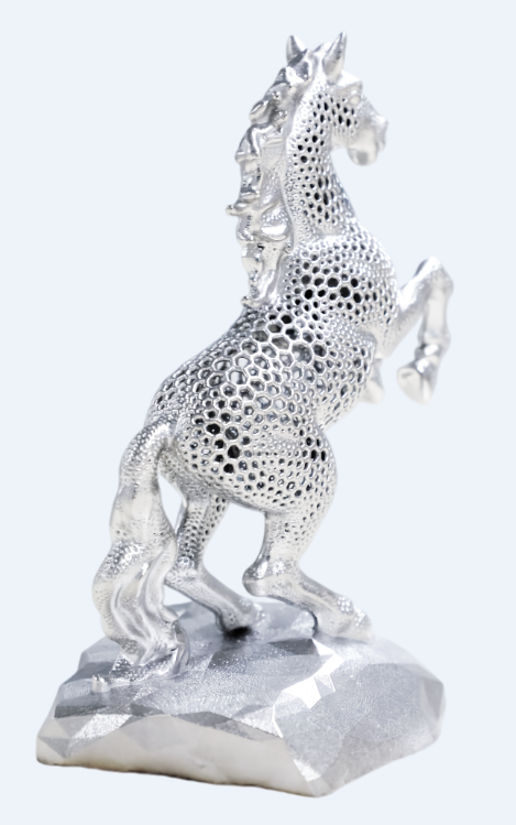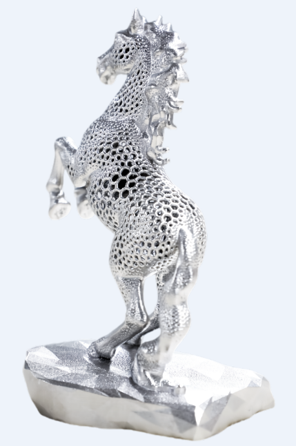 担心摆件太占地方?这款骏马摆件给出了完美答案。采用钛合金材料进行打印,尺寸仅为101*75*138mm,重量约165g。专为现代空间设计,不挑场景——办公桌、书架、玄关、橱窗……随处一放,皆是气场。